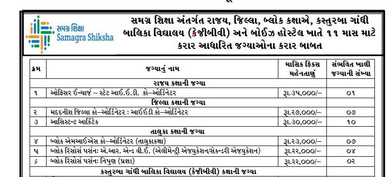 - The final decision regarding recruitment will rest with the State Project Director, Samagra Shiksha, Gandhinagar.